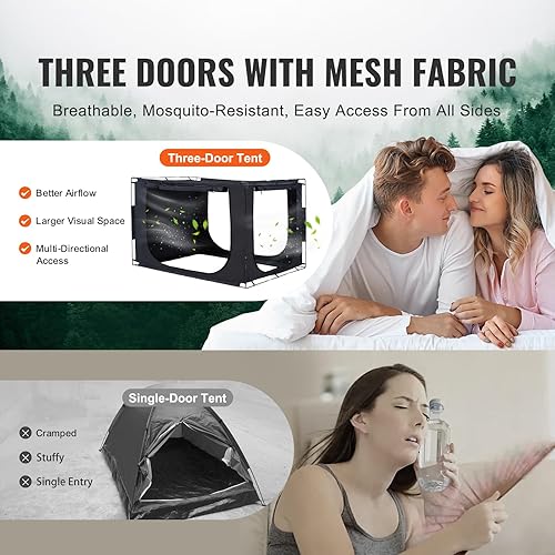 VEVOR Tente de lit en Tissu pongé, Tente de rêve Respirante à 3 Portes avec poteaux en Fibre de 11 mm, 2030 x 1520 x 1190 mm, 70% occultant, pour Maison de Jeu d'enfant et Tente de Couchage d'adulte