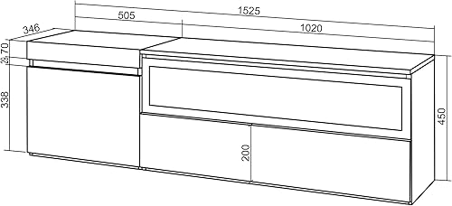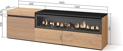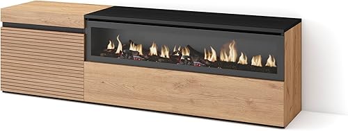 Skraut Home | Meuble TV | Banc Télé | Grand Espace de Rangement | 150x45x35cm | pour Les TV jusqu'à 65' | Cheminée électrique | Style Moderne | Chêne
