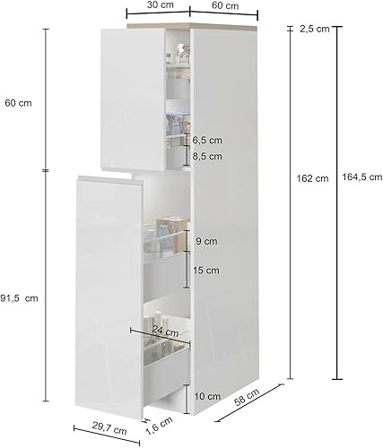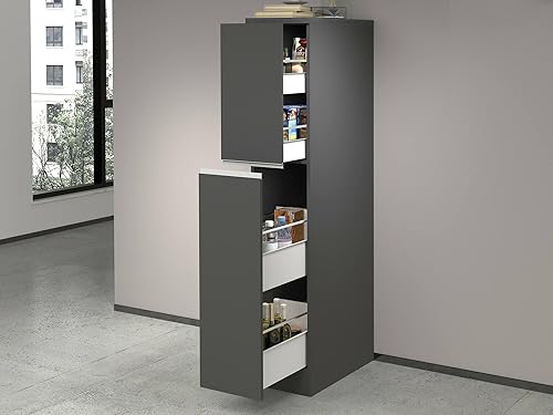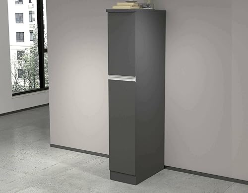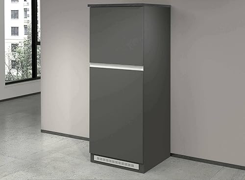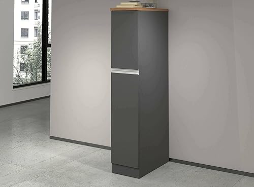 Dmora - Buffet de Cuisine Plinio, Armoire Polyvalente, Meuble de kitchenette, Support réfrigérateur Multifonctionnel, 100% Made in Italy, 60x60h165 cm, Anthracite et Chêne