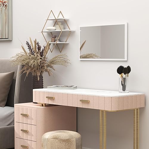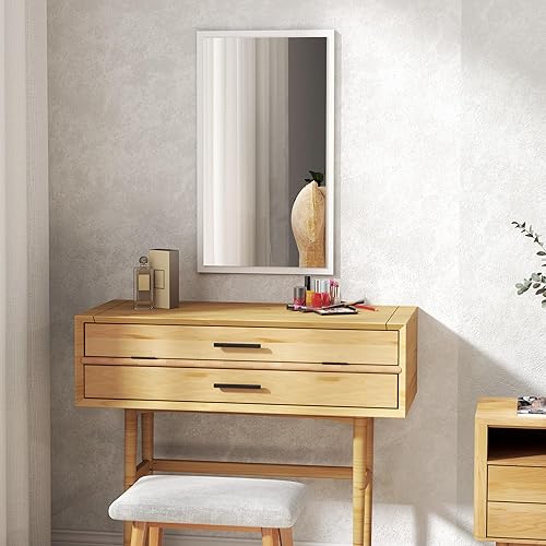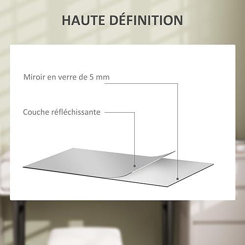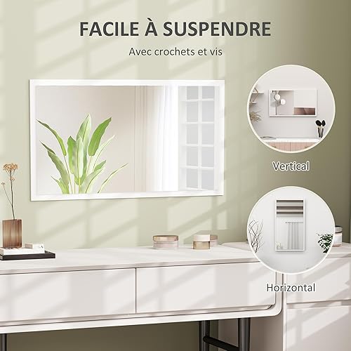 HOMCOM Miroir Mural Miroir rectangulaire 70 x 40 cm, Verre épais 20 mm, pour Salon, Chambre à Coucher, Salle de Bain, Blanc