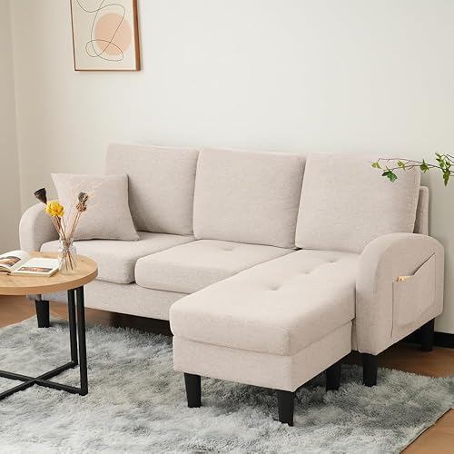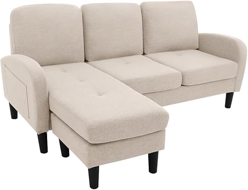 Zubaliya Canapé d'angle en L avec méridienne,Canapé 3 Places,166 x 118 x 77 cm,Tissu Respirant en Coton et Lin,Pieds en Plastique,Idéal pour Les Salons,Les Appartements et Les Bureaux (Dark Grey)