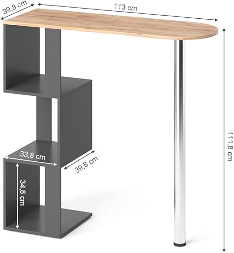 Vicco Table de Bar Vincent, Anthracite/Chêne de Force doré, 113 x 40 cm