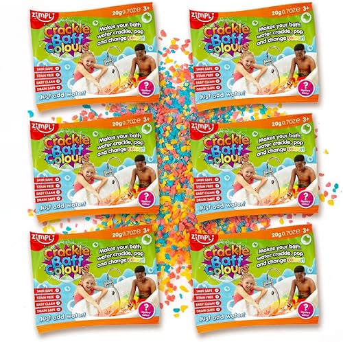 Zimpli Kids Lot de 6 paquets craquelés pour faire craquer l'eau et changer de couleur, cadeaux de fête pour enfants, dragées, jouets de bain, sacs à friandises, cadeaux
