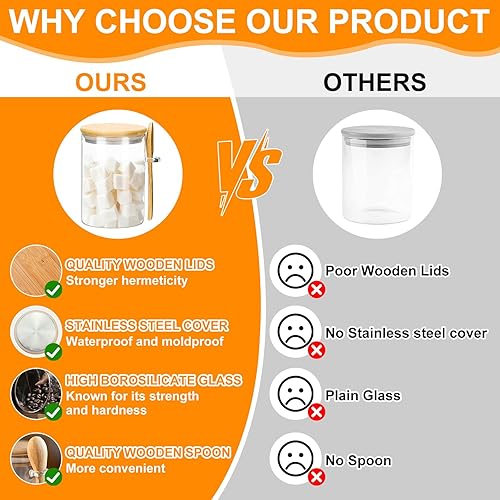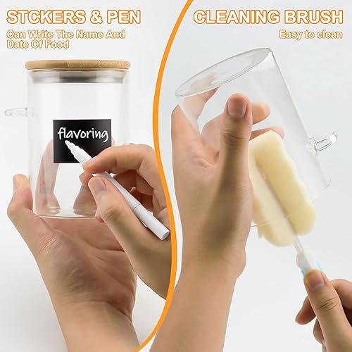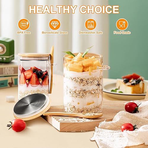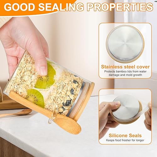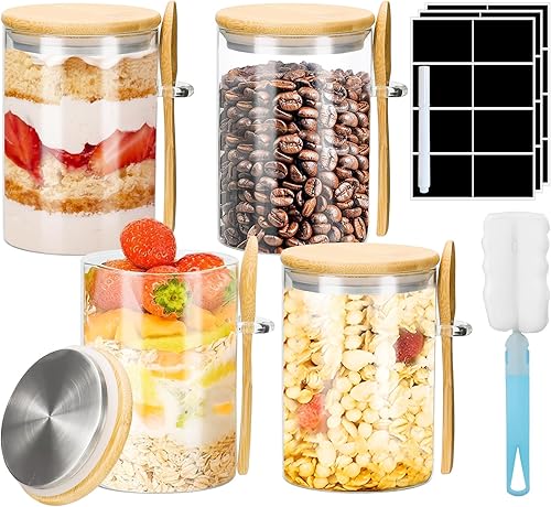 Feelhap Bocal en Verre, Lot de 4 Bocaux de Conservation en Verre avec Hermétique Couvercle et Cuillère 600 ml Pot en Verre, Overnight Oats Jar, Bocaux Rangement Cuisine pour Épices Thé Grains de Café