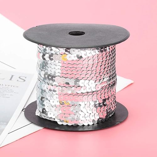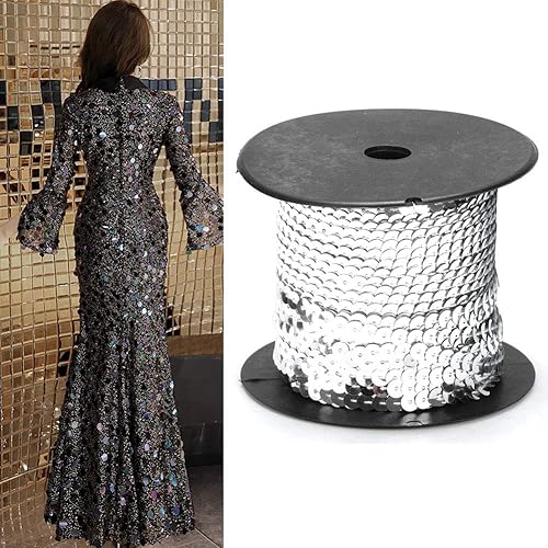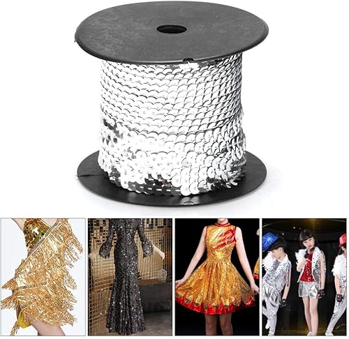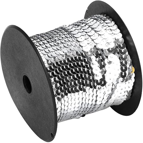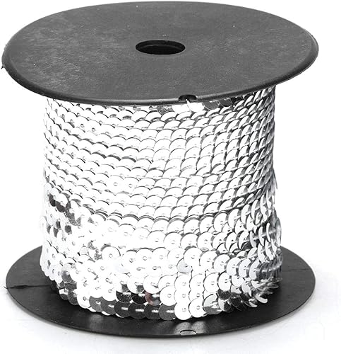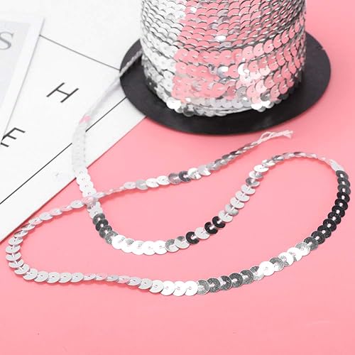 Rubans à Paillettes,1 rouleau Sequin String 6mm Plat Sequin Garniture Sequin String 100 Mètres Ruban Rouleau pour Artisanat DIY Projets Embellissements Costume Accessoires[argent]Bordures à franges