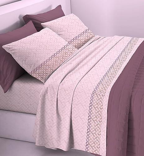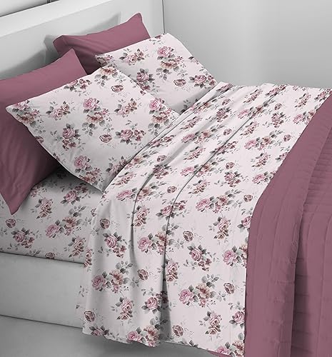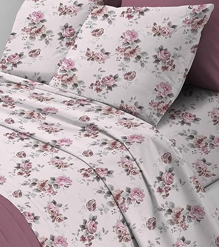 L'EMPORIO CASA Parure de lit en flanelle peignée pour lit double 100 % coton chaud fabriqué en Italie, drap de dessus 240 x 300 + sous angles 180 x 200 + 27 cm, 2 taies d'oreiller 50 x 80 cm, (Martil
