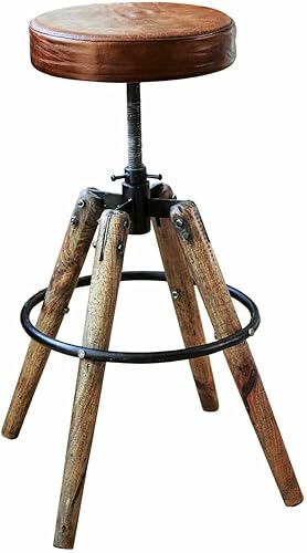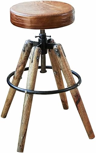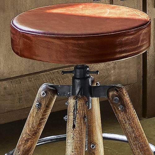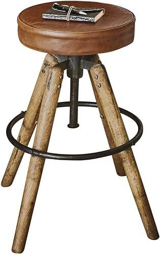 Loberon Tabouret Twist - Cuir de Buffle, manguier - H/D env. 55/40 cm - Marron, Marron