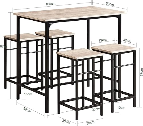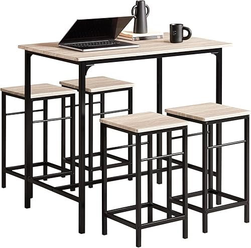 SoBuy® OGT11-N,IT Set 5 pièces Table avec 4 tabourets de bar, ensemble de meubles de balcon