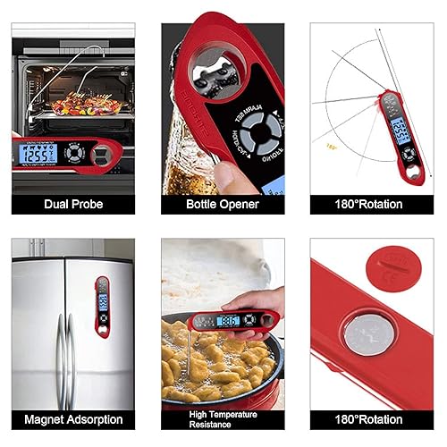 Thermomètre à Viande Numérique, Thermomètre à Sonde de Cuisine pour la Cuisson, Thermomètre Alimentaire, Thermomètre de Cuisson, Thermomètre de Lecture pour Cuisine, Friture,