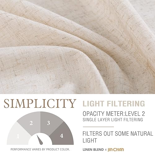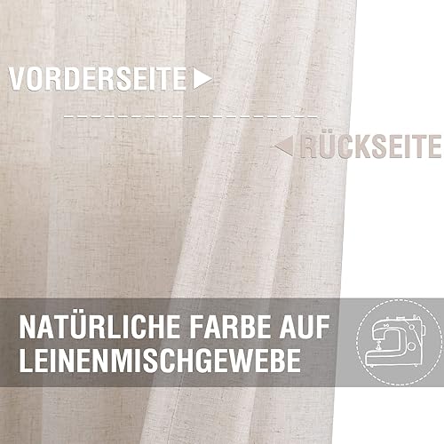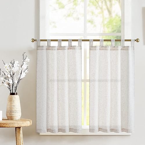 TOPICK Rideau Cuisine Lin Translucide Rideau Court à Pattes Ecru Petit Rideau Intérieur Moderne pour Salon Placard Chambre Fenetre Décoration 2 Pièces 65x90cm