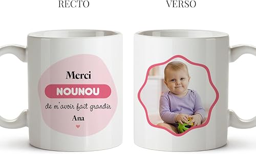 CADEAUX.COM - Mug personnalisé photo - Nounou - Résiste Micro-onde et Lave Vaisselle - Cadeau Nounou Original Personnalisable Photo Message - Cadeau Noel