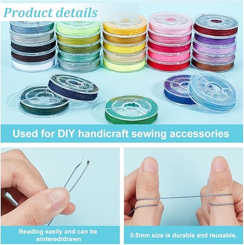 PH PandaHall Ficelle en Nylon de 210m Ficelle de Perles de 0.8 mm Fil de Nylon 30 Couleurs Cordon de Nouage Chinois Chaîne de Bracelet Ficelle Tressée pour Bracelets Colliers Fabrication de Bijoux