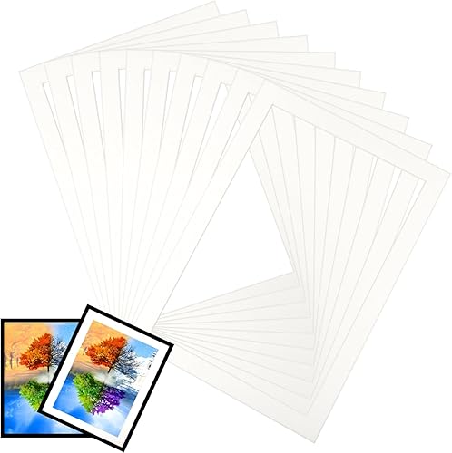 Passe-Partout 10 Pièces Passe Partout Cadre Passepartout Carton (Dimensions Extérieure: 21 x 29,7 cm/Dimensions Intérieures: 17 x 25,7 cm) Passe Partout pour Tableaux/Photos/Tirages d'art - Blanc