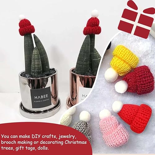 EIHI Mini Chapeaux Tricotés, Mini Peluche Lot Chapeau, Chapeau pour Bricolage, Chapeaux de Père Noël, Petit Chapeau Peluche DIY, Chapeau de Poupée pour Décoration de Bouteille de Vin, 20 pièce