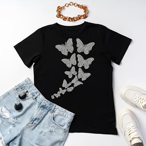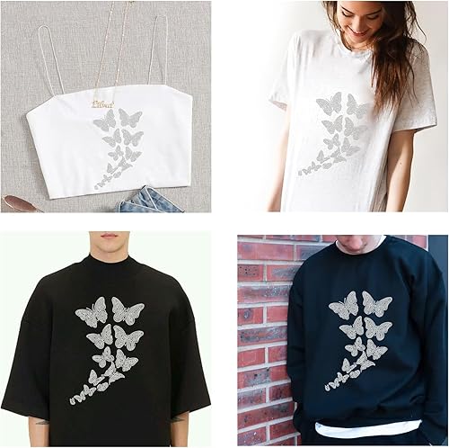 PLIGREAT paillettes strass fer sur patchs papillon volant Bling strass fer sur transferts pour vêtements veste Jeans chapeau Hotfix transfert strass patches femmes T shirt bricolage embellissement