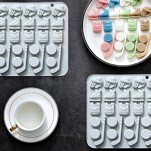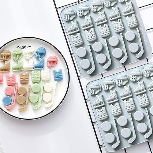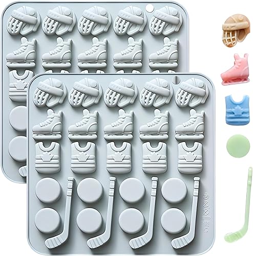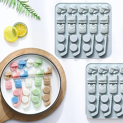 Lot de 2 moules en silicone pour sports de hockey, patins à glace, palets et bâtons