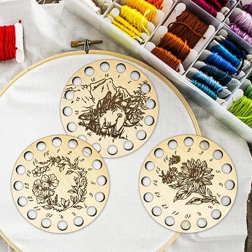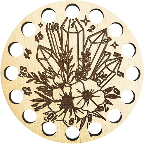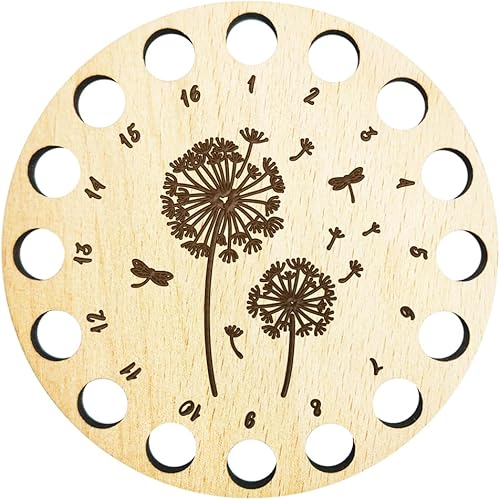 arricraft 1 porte-Fil en Bois pour Point de Croix, Organisateur de Fil à Broder à 16 position, Motif de Pissenlit en Bois, Accessoires de Fil à Coudre pour Point de Croix, Bobine de Crochet
