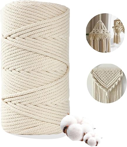 Boic Corde Macramé 4mm x 200m, Ficelle Coton DIY pour Tenture Cintre de Plante et Artisanat Cadeau Décoration