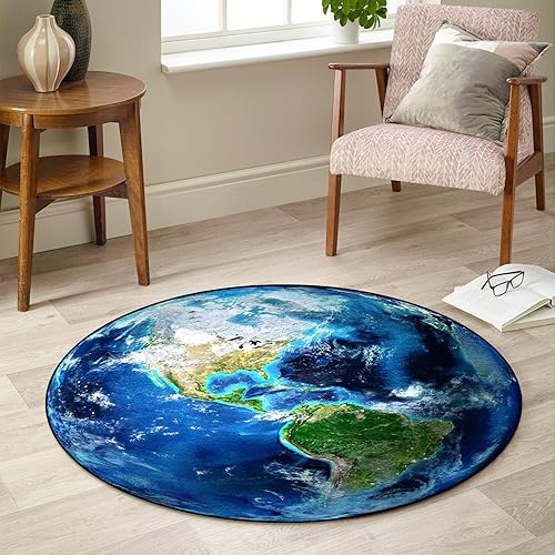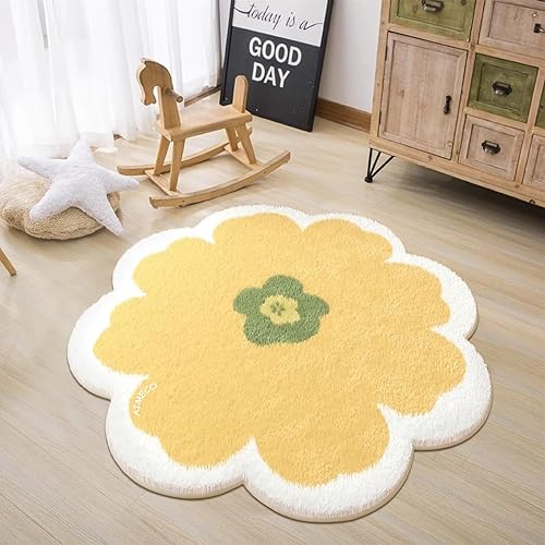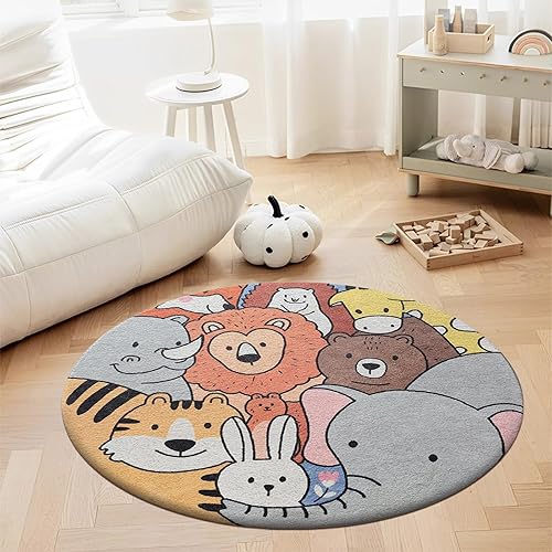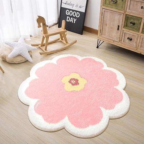 AIMECO Tapis Salon Pas Cher Salle a Manger Rug Doux Chambre Moquette Lavable Adulte Descente de lit Epais Ado Antidérapant et résistant Decoration Cuisine Terrasse Couloir Rond 100cm Fleurs Roses