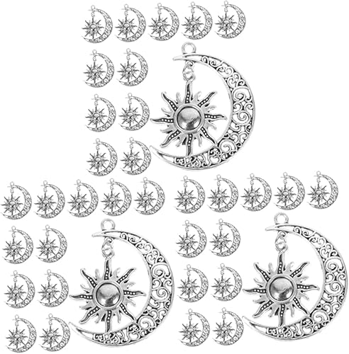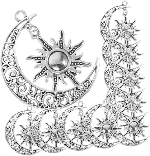 HOMSFOU Pendentif Soleil Lune Bijoux Phase Charme Céleste Croissant Pendants De Soleil Vintage Breloques Soleil Et Lune Alliage Silver