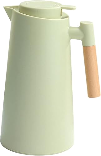 YIWEOG Pichet isotherme 1L Carafe à café thermique Double paroi cafetière sous vide Carafe thermique Pot avec manche en bois Bouilloire à eau Flacon isolé Carafe à thé gardant au chaud et au f