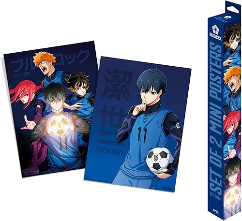 Grupo Erik Lot de 2 mini posters Blue Lock - 38 x 52 cm - Affiche d'art expédiée enroulée dans une boîte de protection - Blue Lock Gifts