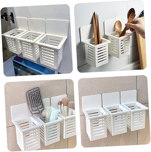 DRESSOOS 4pièces Organisateur Mural Blanc Pour Salle De Bain Et Cuisine Étagères Perçage Avec Fonction De Drainage Support De Rangement Pratique Et Élégant