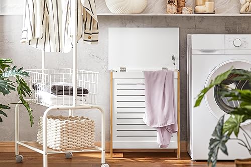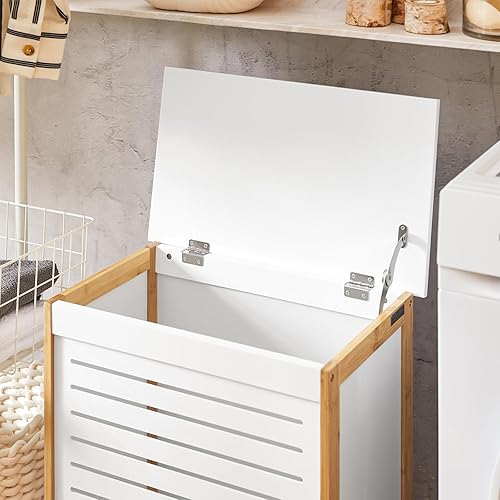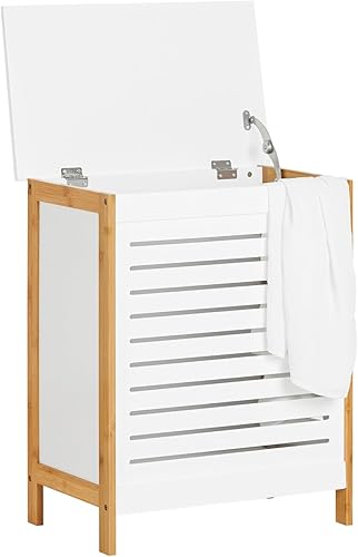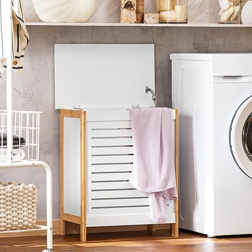 SoBuy Corbeille à Linge, Coffre à Linge, Panier de Rangement, Corbeille Linge Sale avec Couvercle, Porte Vêtement Pour Laverie Salle de Bain, FSS66-WN