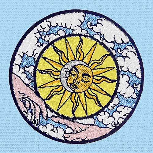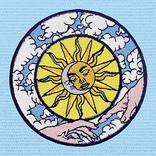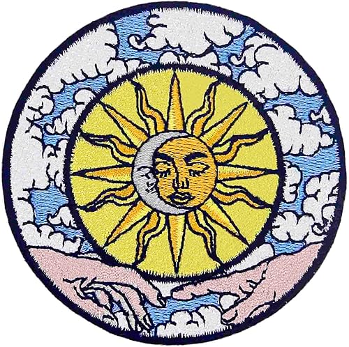 Patch brodé en forme de Lune et Soleil Célestes La Création du Monde, à coudre ou à coller avec fer à repasser