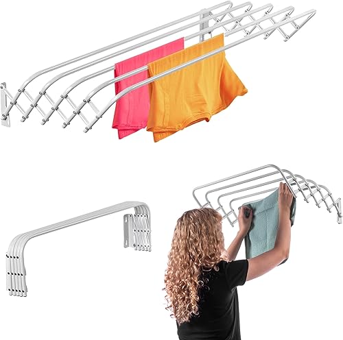 KADAX Séchoir à linge pliable pour salle de bain, peu encombrant, en métal, paroi en accordéon extensible, cintre pour l'intérieur (60 cm)