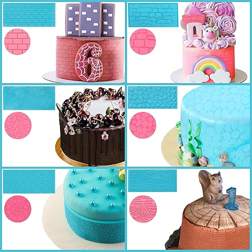 Kurtzy Embosseur Pate a Sucre pour Gâteaux au Chocolat (Lot de 6) - Imprimés Briques, Bois, Floral, Pavé et Cailloux - Tapis Relief Patisserie 3D pour Bonbons, Déco, Gelées & Pâtisseries Faites Maison