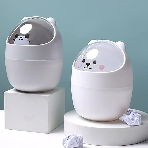 Mini Poubelle De Bureau Avec Couvercle, Poubelle De Table Portable, Poubelle De Table De Maquillage, Pour Maison Salon Cuisine Chambre Salle De Bain Bureau,Blanc/Jaune/Gris Foncé