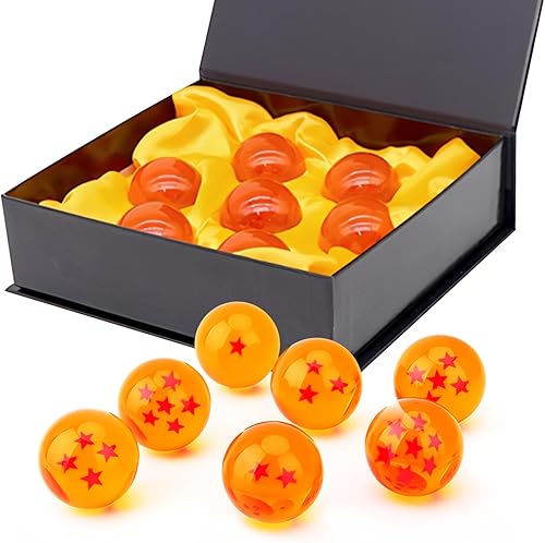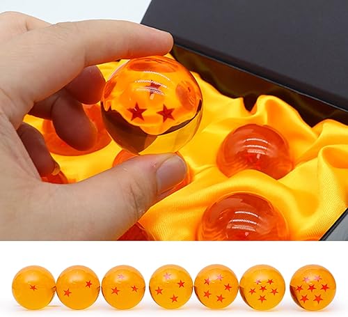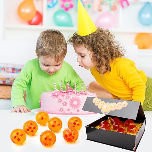 JurciCat 7 Pièces Boule de Dragon Anime Deco 4.3cm Dragon Boules de Cristal avec Boîte-Cadeau pour Les Collectionneurs Cosplay Partie Jour des Enfants Anniversaire Halloween Noël (1 à 7 étoiles)