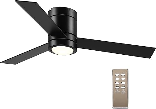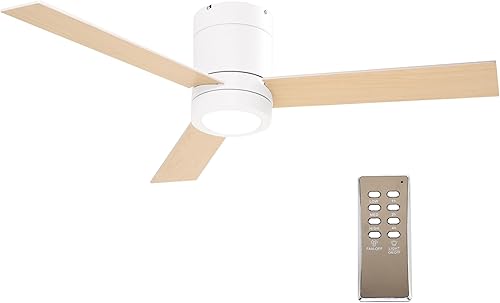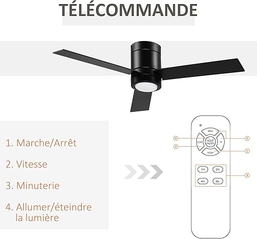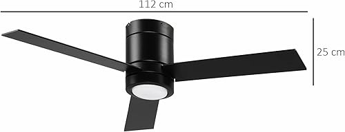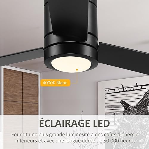 HOMCOM Ventilateur plafond avec lumiere 48 W, ventilateur de plafond avec 3 pales et télécommande 3 vitesses silencieux, lampe ventilateur plafond LED Ø112 cm, pour chambre, salon, naturel et blanc