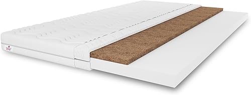 MARPUR Surmatelas TOP5, surmatelas en fibre de coco, dimensions : 160 x 200 x 5 cm, avec housse, couleur : blanc, dur : H4