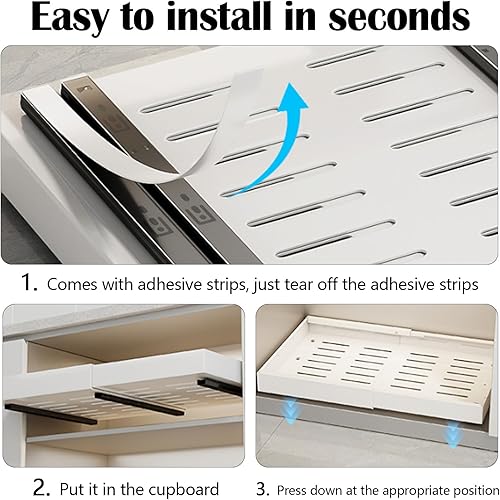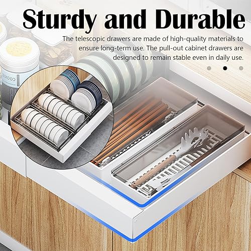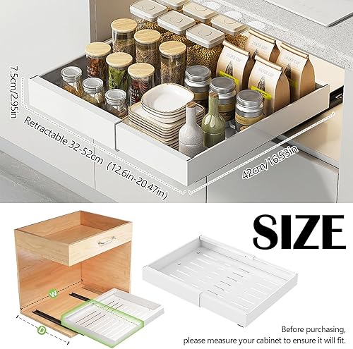 Organisateur De Tiroirs De Cuisine, Tiroir Coulissant Telescopique Cuisine Pour Placard De Cuisine En Largeur De 32cm-52cm étagère à épices Coulissante Organisateur De Tiroirs Inserts De Cuisine