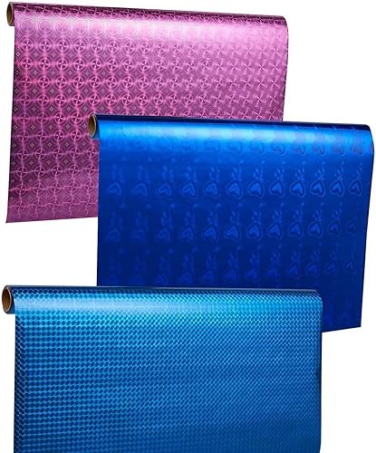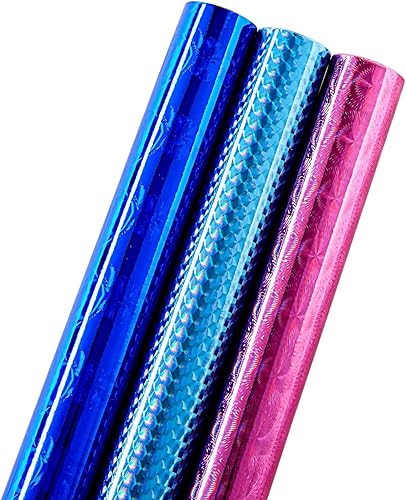 Rouleau de Papier Cadeau, 3 Rouleaux Papier Emballage Holographique Brillant Irisé pour Anniversaire, 3 Motifs, 44 cm x 5,2 Mètres