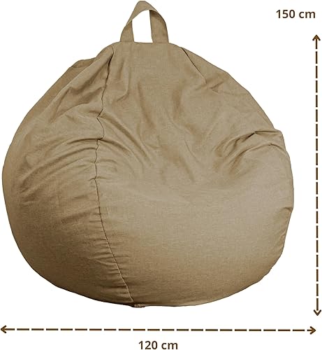 deco arts Pouf Poire Géant XXL d'intérieur en Tissu Effet Lin - Ergonomique - Confortable - 120x150 cm - Beige