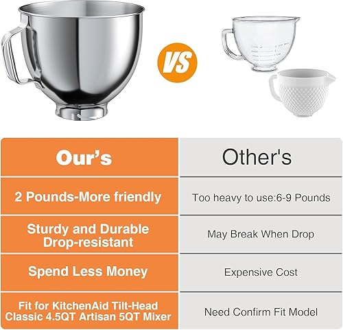Yuehuamech Bols mélangeurs en acier inoxydable de 4,5 à 5 litres avec tête inclinable et poignée - Bols mélangeurs de 5 QT compatibles avec les mélangeurs KitchenAid - Compagnon de cuisine