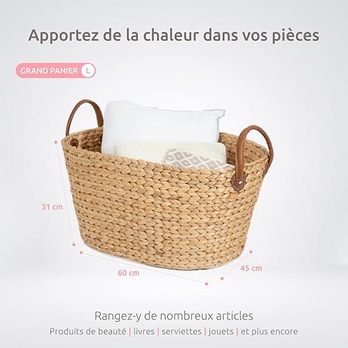 Compactor Grand Panier à Linge Belize, Jacinthe d'eau, Beige, 60 x 45 x 37 cm, RAN6826 Naturel