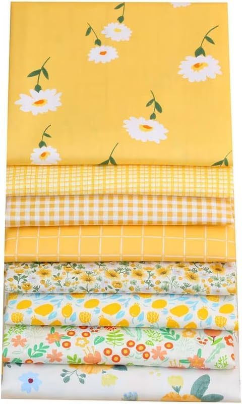 CraftsFabrics Lot de 8 coupons de tissu en coton imprimé floral Jaune 40 x 50 cm