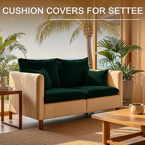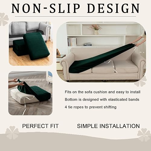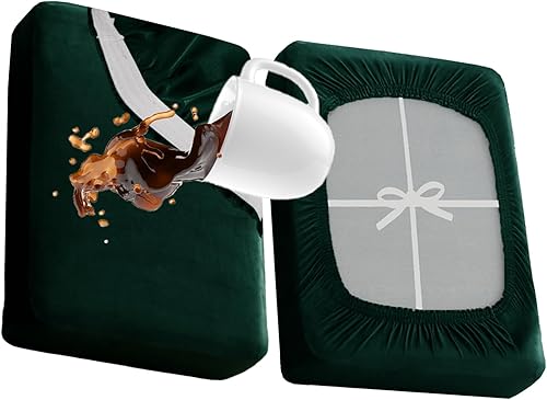 KYJSW Housse De Coussin De Canapé Imperméable, Housses De Coussin De Siège en Velours Extensible, Antidérapant Housse Assise Canapé avec Liens (Vert pin,Housse de Dossier)