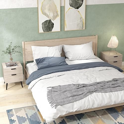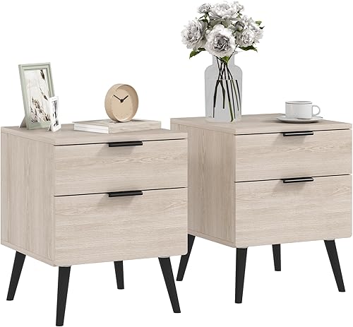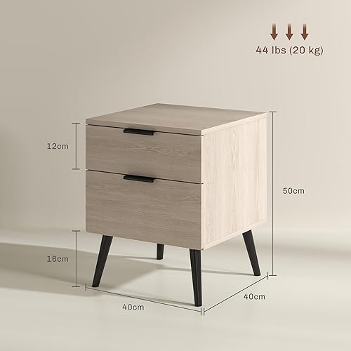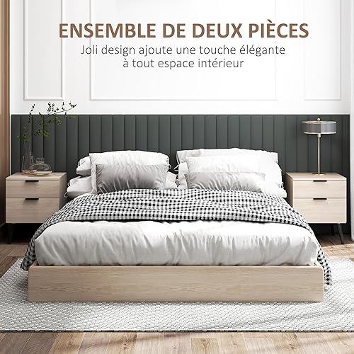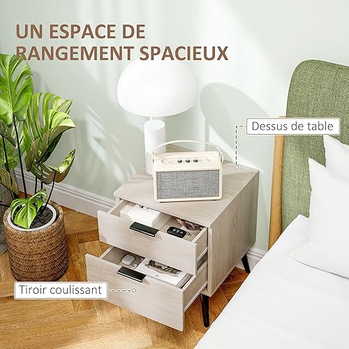 HOMCOM Lot de 2 Tables de Chevet, Table de Nuit, Style Nordique Moderne, avec tiroir à Deux Niveaux, Pieds en Bois Massif, pour Chambre à Coucher, Salon, Effet Bois de chêne