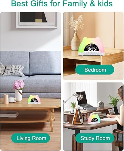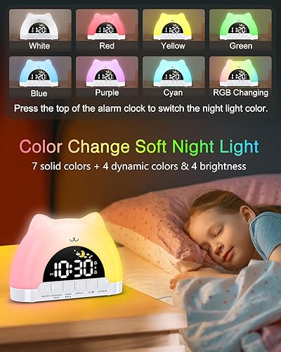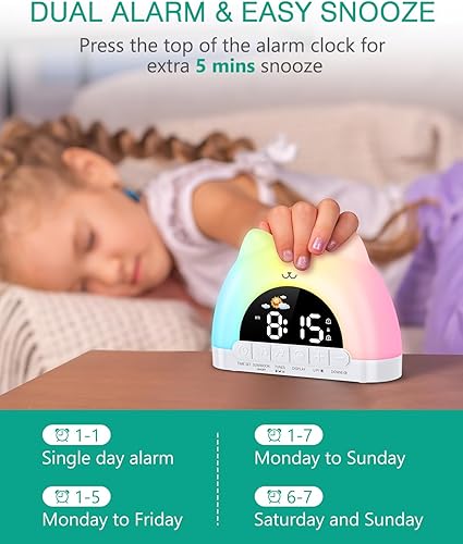 ORIA Réveil Enfant Éducatif Jour/Nuit, Réveil Numérique avec Veilleuse RGB 11 Couleurs, 10 Musiques, Double Alarme, Réglage Luminosite, Veilleuse Enfant, Entraîneur de Sommeil pour Garçons/Filles