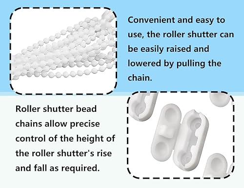 KAPSING Chaîne de Remplacement pour Store Enrouleur, Chaîne de Store Enrouleur de 4 Mètres avec 10 Connecteurs de Chaîne pour Store Enrouleur, Clips pour Chaînes à Enrouleurs