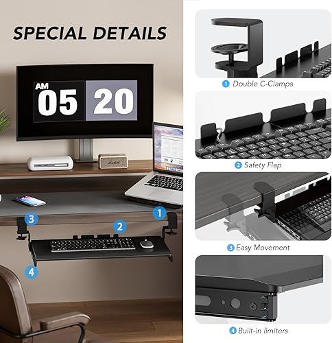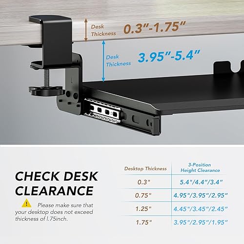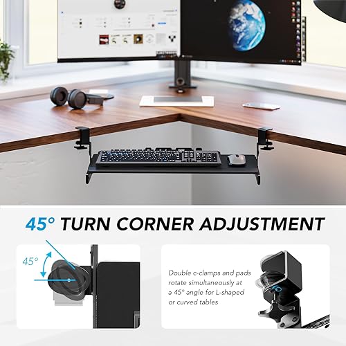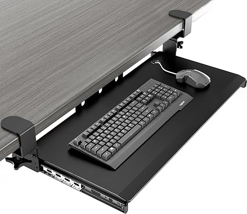 Plateau de clavier extractible sous le bureau avec système de fixation en C extra robuste, 27,3 cm (82,5 cm y compris les pinces) x 27,9 cm, plateforme coulissante pour écrire sur ordinateur, blanc