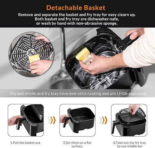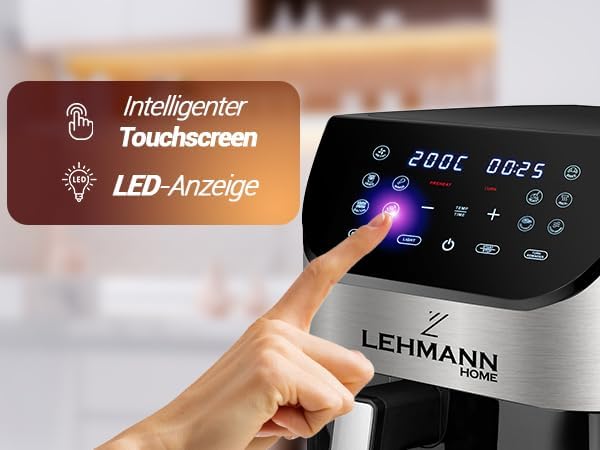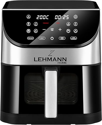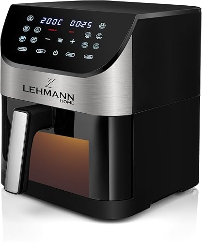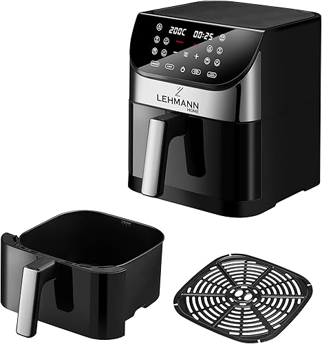Lehmann Friteuse à air chaud 6L avec 10 programmes de cuisson, friteuse à air chaud 1500 W et contrôle de la température 76-200°C, Air Fryer avec minuterie et écran tactile LED numérique