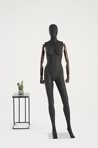 Eurohandisplay Magnifique mannequin de vitrine abstrait - Avec revêtement en lin - Bras en bois - Plaque de support en acier inoxydable (XM-11B-MB) - Blanc