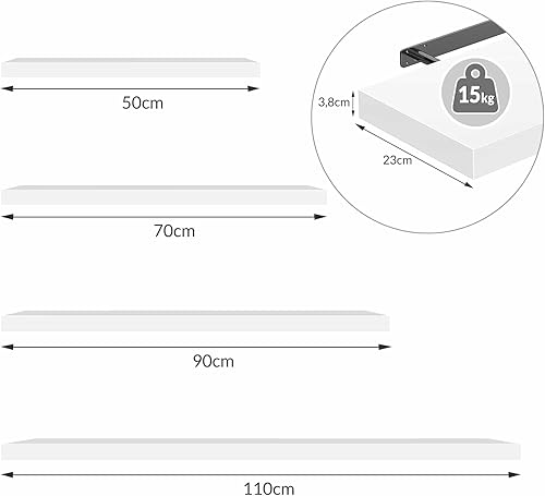Casaria 2X Étagères Murales Flottantes 70 cm Blanc MDF Robuste Effet Flottant étagère Bois Rangement décoration