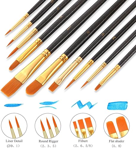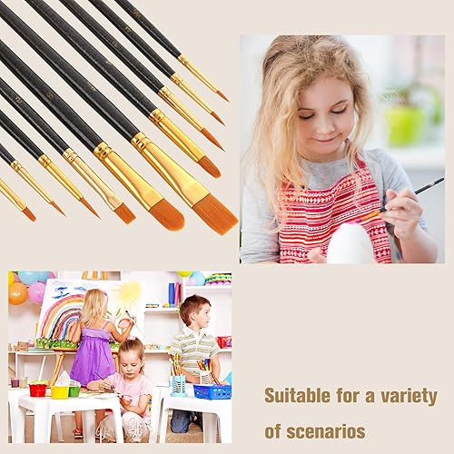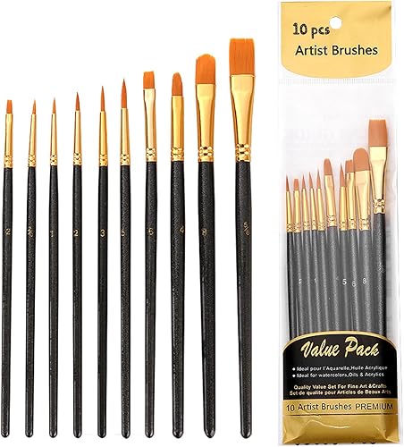 NXPUXP10 Pièces Pinceaux Peinture Acrylique,Nylon Art Pinceaux,Nylon Art Pinceaux Fin Stylos à Pointe Lisse,pour Artistes, Adultes et Enfants